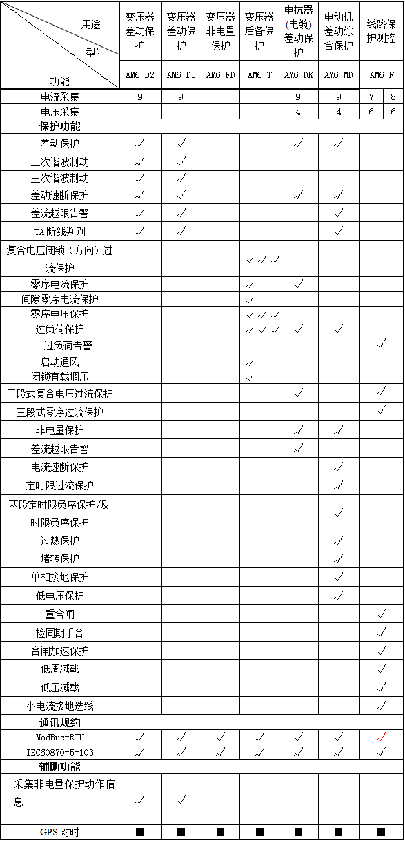 AM6-D2 變壓器差動保護裝置(二繞組) 110kV及以下電壓等級容量為6300kVA及以上的變壓器