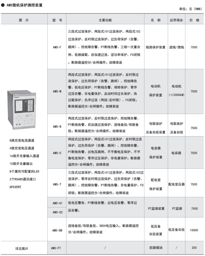 AM系列微機保護測控裝置集保護、測量、控制于一體,適用于35kV及以下電壓等級的用戶終端變電站(所),可實現用戶變電站的保護和測控。