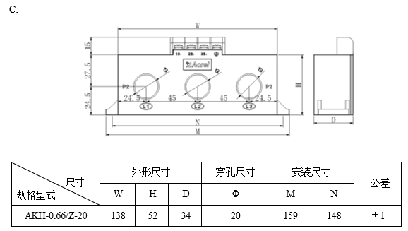 AKH-0.66 Z型系列三相導(dǎo)軌式電流互感器