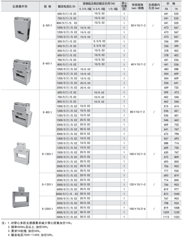 | S-50Ⅱ | 600-800/5(1)/0.02 | 10/0.02 | 1 | 50×10/ 1-2 | / | B | ||