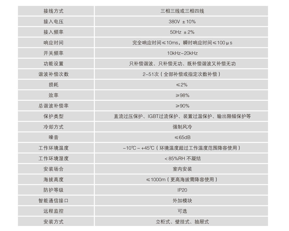 適用于并聯在含諧波負載的低壓配電系統中,能夠對動態變化的諧波電流進行快速實時的跟蹤和補償。