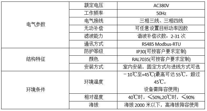 技術(shù)參數(shù):無功補償容量120 Kvar,諧波補償電流50A