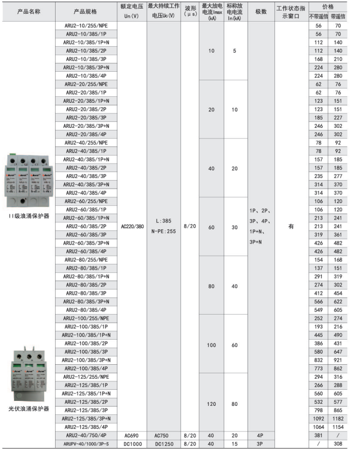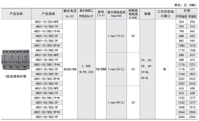 ARU系列浪涌保護器是一種為各種電子設(shè)備、儀器儀表、通訊線路、低壓電氣線路提供安全防護的電子裝置。適用于交流50/60Hz,額定電壓380V的供電系統(tǒng)或光伏系統(tǒng),對間接雷電和直接雷電影響或其他瞬時過電壓的電涌進行保護。應(yīng)用范圍:
