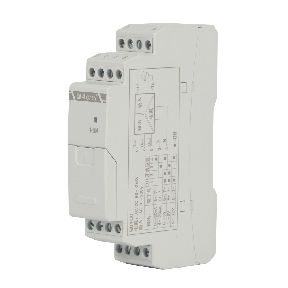 BD100系列電量變送器是一種將電網(wǎng)中的電流、電壓電參量,經(jīng)隔離變送成線性的直流模擬信號(hào)或數(shù)字信號(hào)裝置。產(chǎn)品符合GB/T13850-1998、IEC-688 標(biāo)準(zhǔn)。