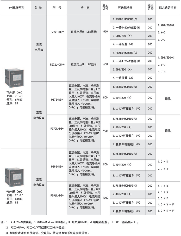 適用于直流屏、太陽能發電、電信基站等直流系統的電力參數檢測。