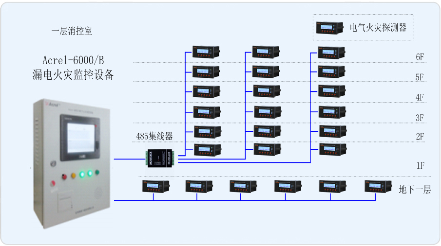 本項目地上六層,地下一層?,F需對整個紅星美凱龍家居生活廣場重要用電回路進行監控。安科瑞電氣股份有限公司為本項目設計一套Acrel-6000/B漏電火災監控系統,并在重要進線回路安裝電氣火災探測器ARCM200,由此來實時監測變電所內重要回路的漏電流,以確保變電所配電系統的電氣安全。