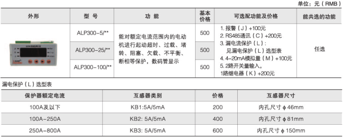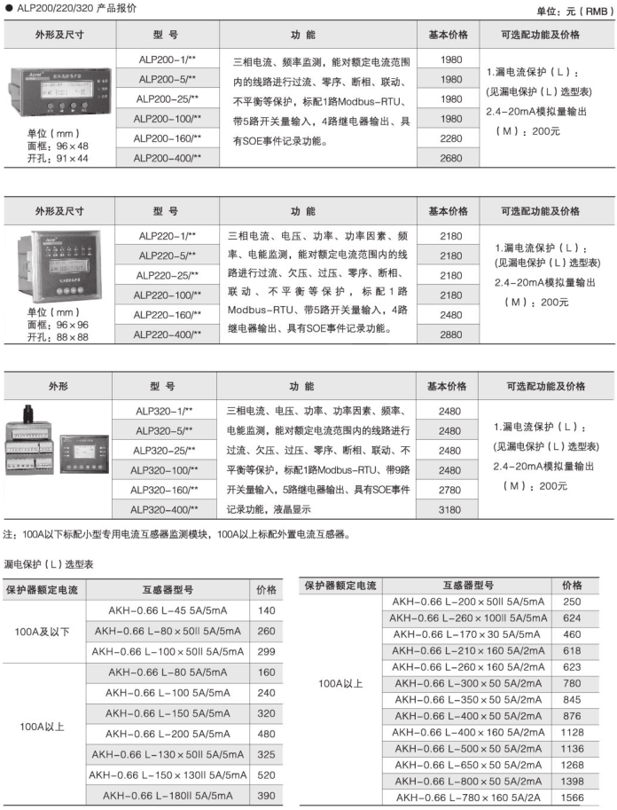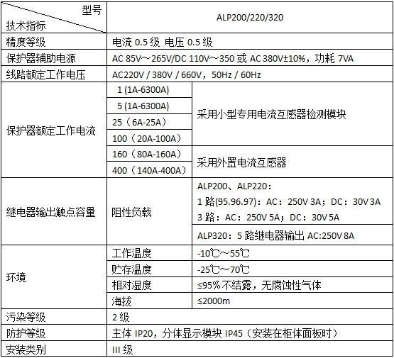 ALP系列低壓保護器集保護、測量、控制、總線通訊為一體,同時提供了遠程自動控制、現場直接控制、面板指示、信號報警、操作記錄、跳閘報警記錄及開關量記錄等功能。