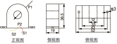 注:一次電流從P1面進,P2面(灌膠面)出;二次引線黃色為S2,紅色為S1,引線長150mm,引線截面積0.22m2