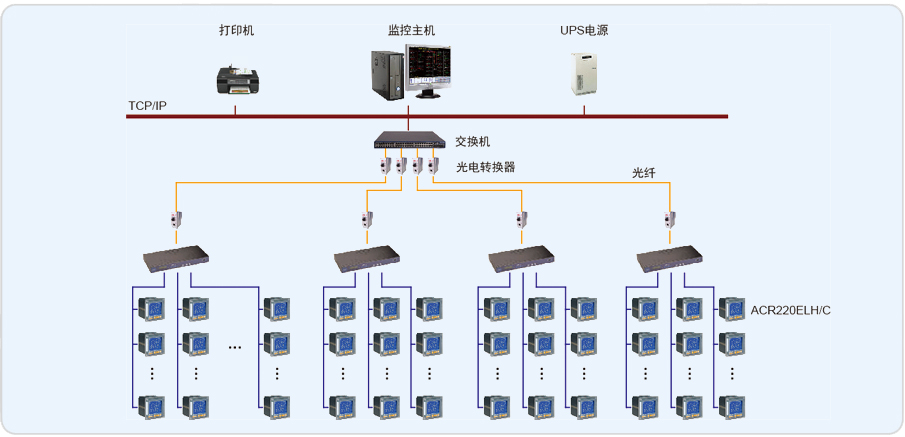 高壓配電間內(nèi)我司智能儀表ACR220EL共28臺(tái),采用1根屏蔽雙絞線連接至通訊管理機(jī),進(jìn)行數(shù)據(jù)的集中采集;2車間及3車間內(nèi)我司智能儀表ACR220EL共11臺(tái),采用1根屏蔽雙絞線連接至通訊管理機(jī);1車間內(nèi)我司智能儀表ACR220EL共5臺(tái),采用1根屏蔽雙絞線連接至通訊管理機(jī),進(jìn)行數(shù)據(jù)的集中采集;4車間內(nèi)我司智能儀表ACR220EL共3臺(tái),采用1根屏蔽雙絞線連接至通訊管理機(jī),進(jìn)行數(shù)據(jù)的集中采集;通訊線纜均采取屏蔽線接地,防止強(qiáng)電信號(hào)干擾,末端加裝120歐電阻,增強(qiáng)線路信號(hào),保障了數(shù)據(jù)傳輸?shù)膶?shí)時(shí)性。