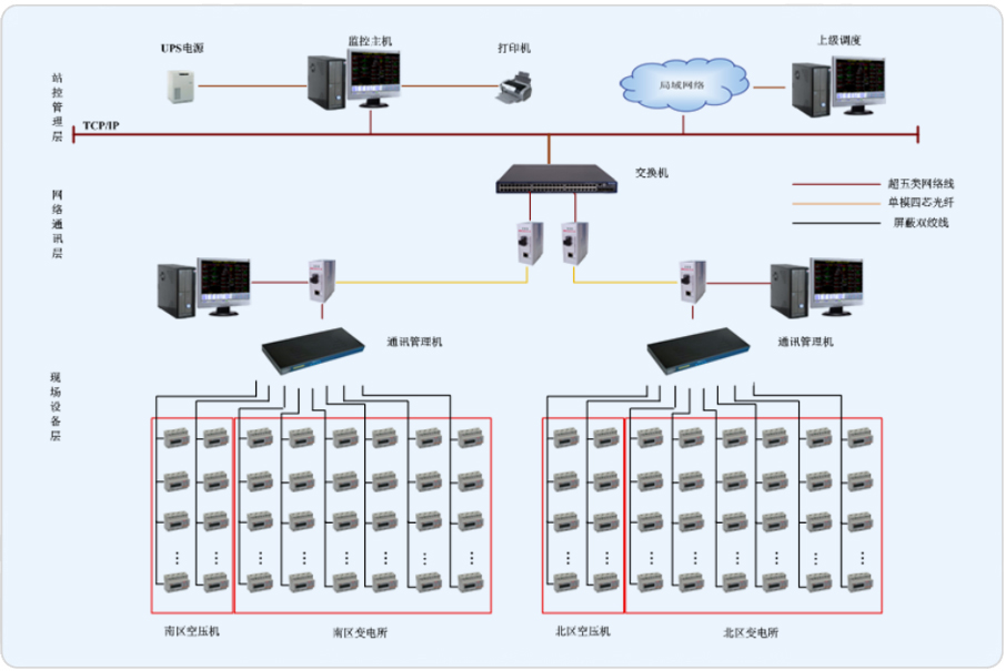 本項目為耐世特汽車針對南北區(qū)變電所和空壓機回路設(shè)置的配電所電力監(jiān)控系統(tǒng)。根據(jù)配電系統(tǒng)管理的要求,ACREL-2000電力監(jiān)控系統(tǒng)對耐世特南北區(qū)兩個廠房的2個變電所內(nèi)的低壓配進出線和車間里5臺大型空壓機的配電回路進行監(jiān)控,以保證用電的安全和可靠。通過組建系統(tǒng)網(wǎng)絡(luò),實時監(jiān)測變電所內(nèi)各個回路的電流、電壓、功率、開關(guān)狀態(tài)等電參量,由此達(dá)到變電所少人值守或無人值守的智能化管理。